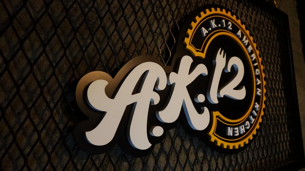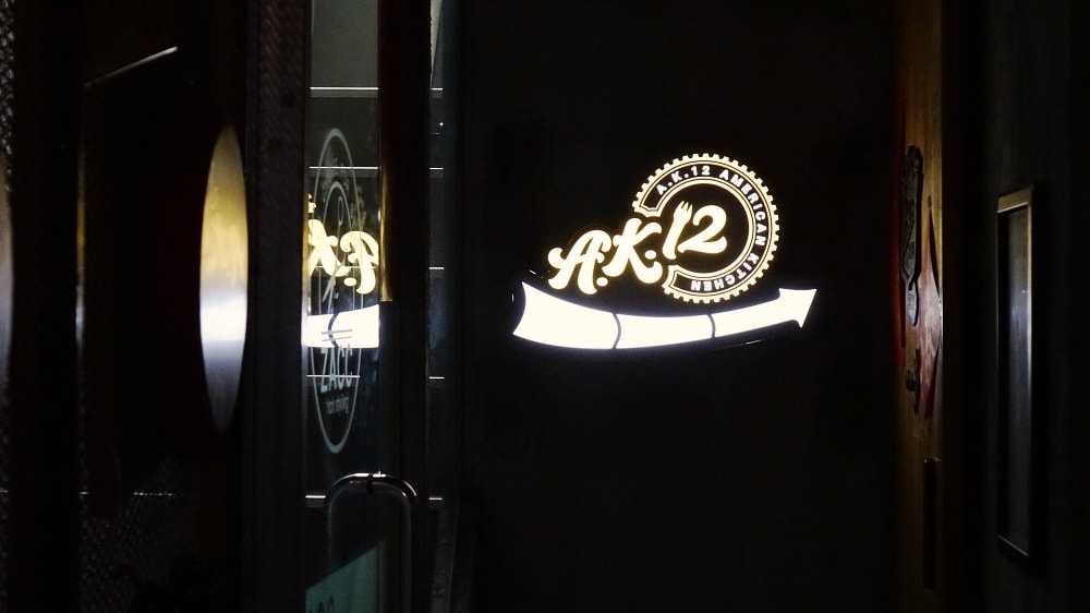 顏色採用鮮豔的對比黃色凸顯美式胡桃木的紋路,抬頭看上方有個超大型𝙇𝙊𝙂𝙊,原來是一間位於𝟮𝙁的美式小館,更特別的是他居然是寵物友善~.ᐟ.ᐟ