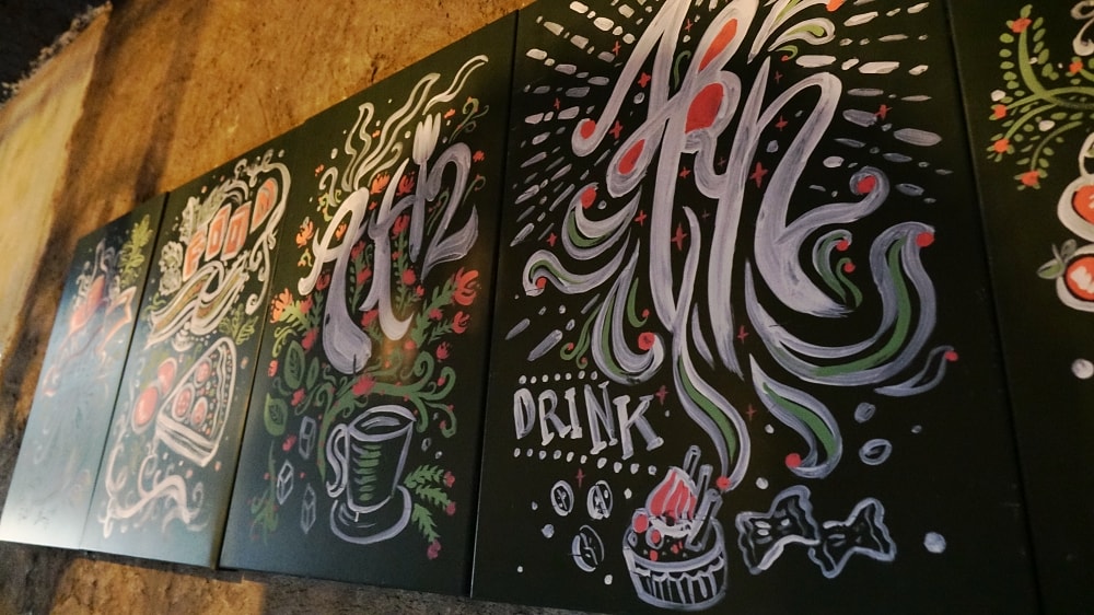 壁面也有美式塗鴉風格所繪製的美食餐廳圖案,也有部分鐵件的裝飾品展現工業風的味道,在氛圍表現上真的很加分~真的光第一印象就很高了~