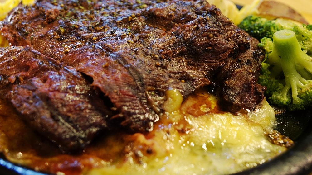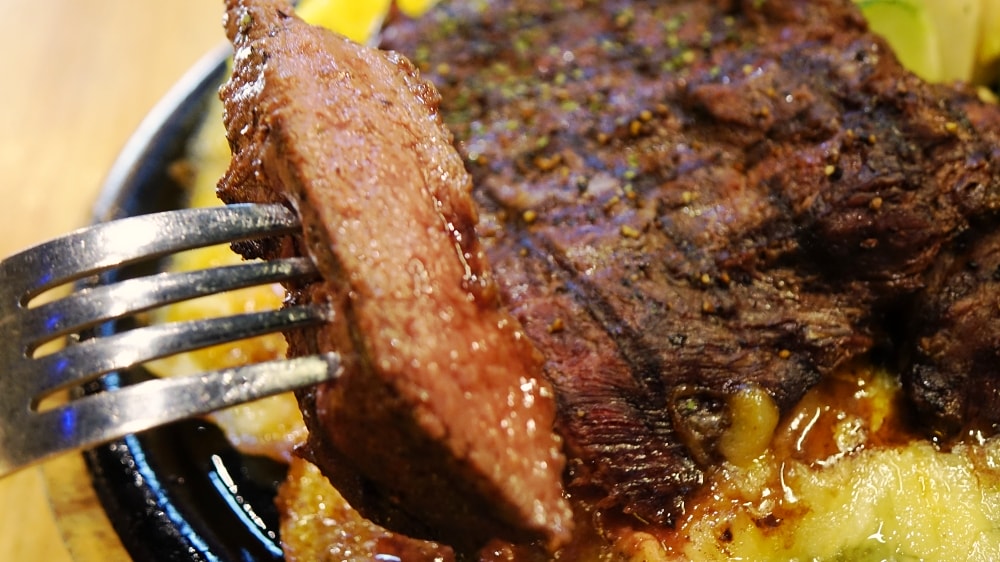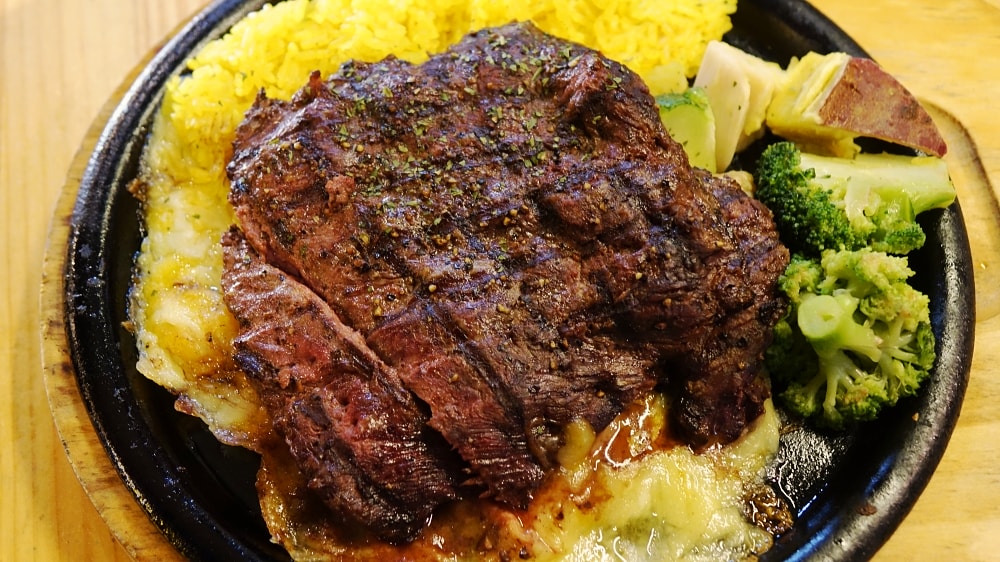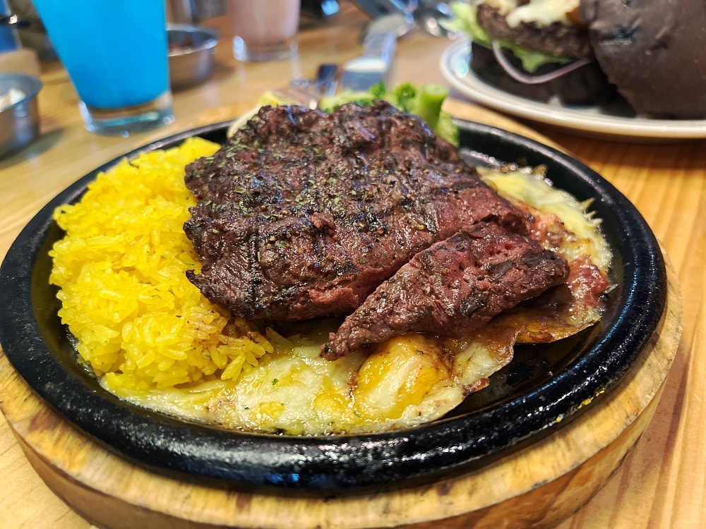 原本以為副食會是麵條,沒想到上來的是有咖哩香味的長米,意外地跟起司跟牛排超搭~ 真心推薦一上桌要趕緊吃起司,趁還沒凝固時搭配米飯跟牛排吃真的是極品~牛排點了習慣的五分熟,吃起來有保留牛本身的香氣,牛排上的格網痕跡應該是用美式炭烤方式調理的,但真的厲害即使放涼了再吃也一點都不柴~ 真心推薦~.ᐟ.ᐟ