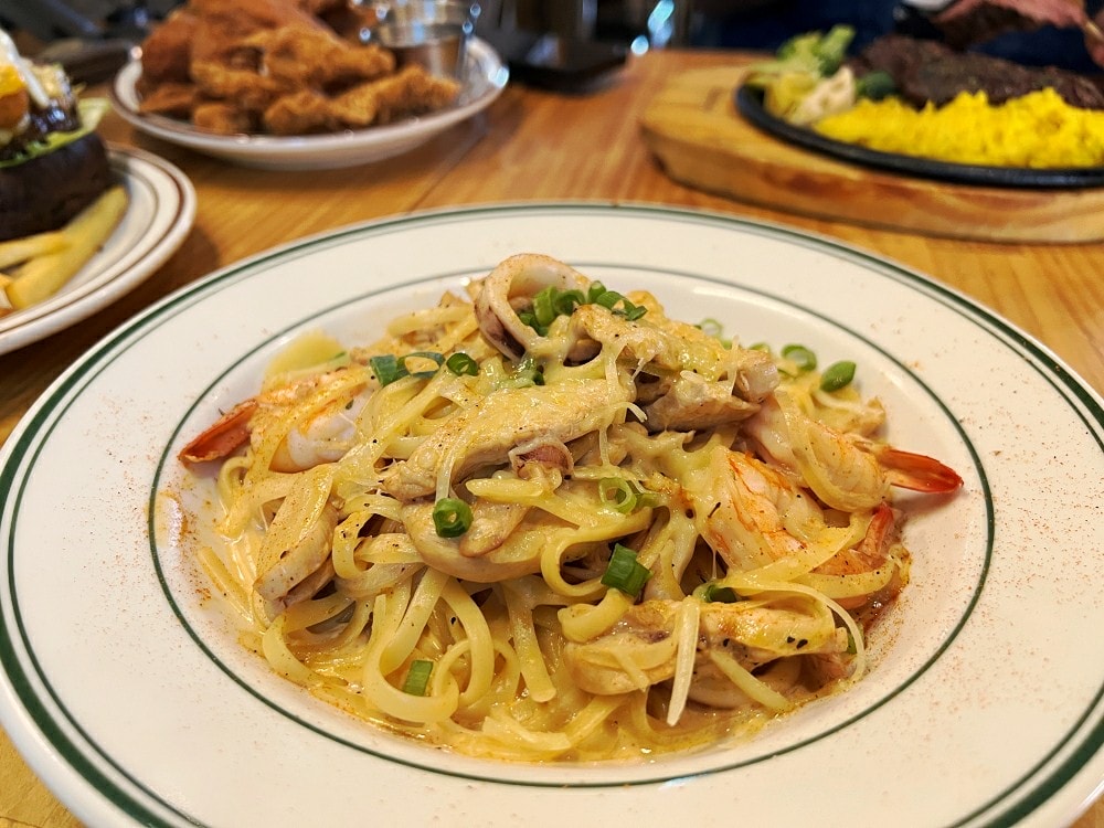 再來是本店隱藏極品美食~就是義大利麵阿~.ᐟ.ᐟ 義大利麵的醬汁完全是老闆親自現場熬煮,也因為是現做所以等待時間會拉非常長,真的想吃的話也建議早點來點餐才不會耽誤到用餐時間唷~ 不管是海鮮還是雞肉都超級嫩也很入味,麵條硬度也恰到好處,完全直接被這道義大利麵抓住味蕾耶 .ᐟ.ᐟ
